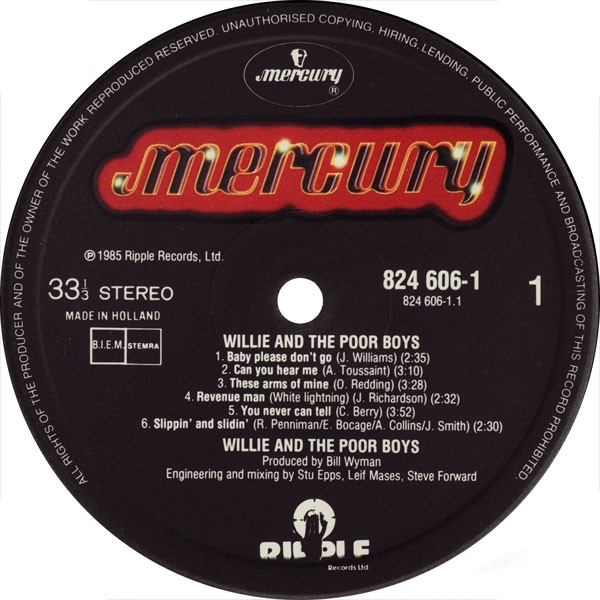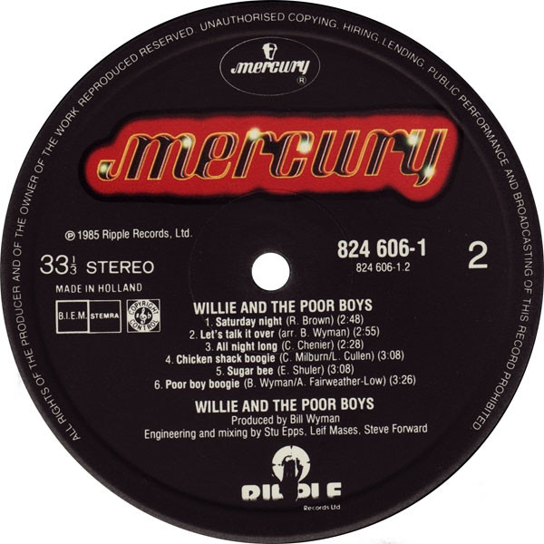 Willie And The Poor Boys" es el nombre de un proyecto muy especial en el que se dan cita importantes figuras del rock inglés de los 70's, se trata de Bill Wyman, Ron Wood y Charlie Watts (Rolling Stones), Kenney Jones (The Faces y The Who), John Entwistle (Judas Priest), Ringo Starr (The Beatles), y otros menos conocidos -pero no menos importantes- como Andy Fairweather-Low (Guitarrista de Eric Clapton), Chris Rea, Gary Brooker (Procol Harum) y Raf Ravenscroft.